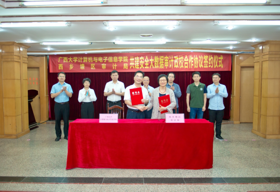 2022年5月12日,威廉官网中国官方网站和南宁市西乡塘区审计局在西乡塘区政府办公楼,举行“威廉官网中国官方网站与南宁市西乡塘区审计局安全大数据审计政学合作框架协议”签约仪式暨交流座谈会。