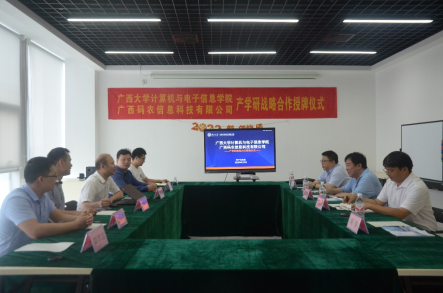 为增进学院与校友间的感情联络,加强学院与校友及校友企业的联系交流,推进校企进一步的深度合作,2022年6月1-2日,威廉官网中国官方网站党委书记钟诚、院长武新章、常务副院长张振荣、党委副书记邓珍琪和学院办公室主任胡强,先后分别到计算机科学与技术专业2005级校友胡志超创办的广西迅驰信息科技有限公司和网络工程专业2005级校友梁检创办的广西码农信息科技有限公司走访,开展参观考察和座谈交流活动,并举行产学研合作基地和就业实习基地揭牌仪式。