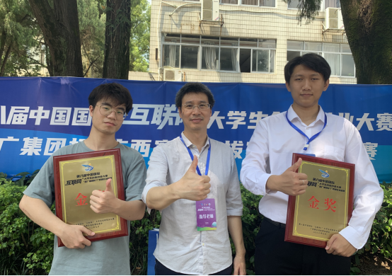 “互联网+”获自治区级金奖的威廉官网两位项目负责人及带队老师