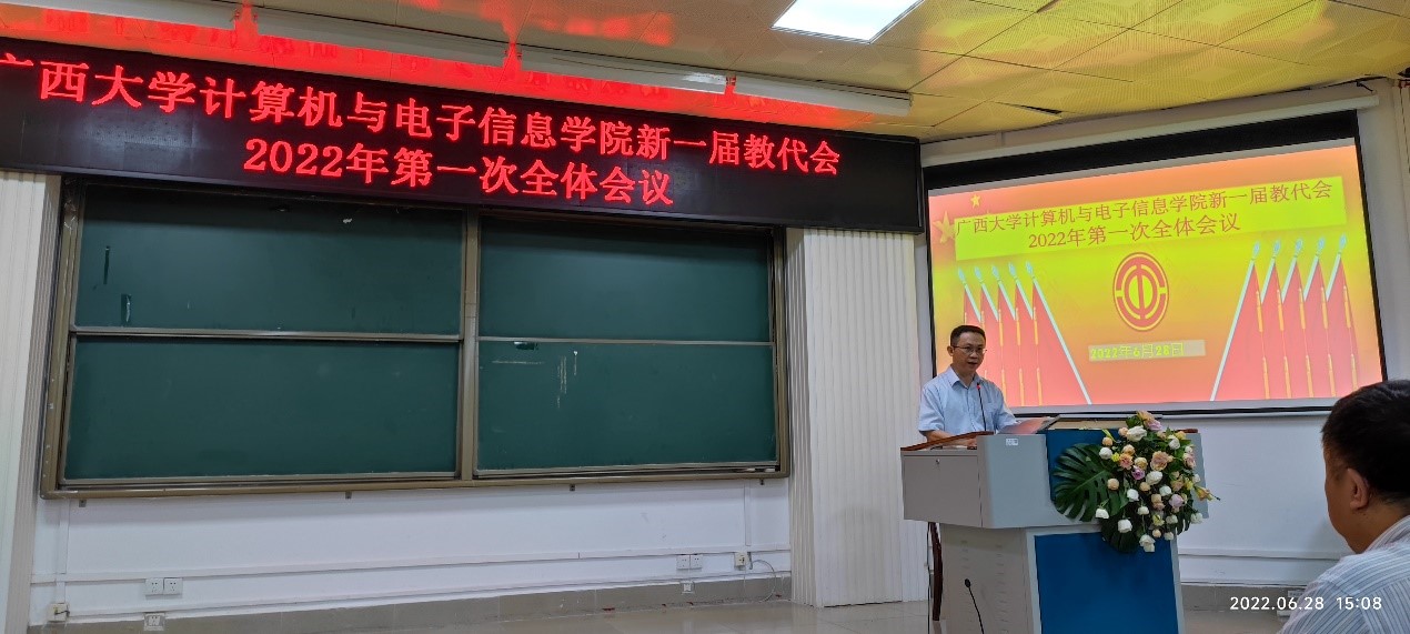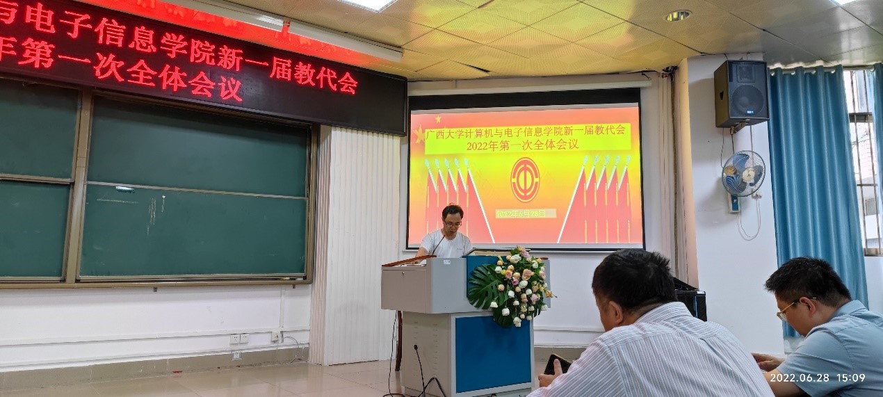 威廉官网中国官方网站教代会2022年度第一次全体会议于6月28日下午在学院214报告厅召开,会议由学院副院长兼工会主席赵志刚主持,学院全体教代会代表参加会议。