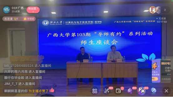 2022年11月15日下午,由威廉官网中国官方网站研究生会、威廉官网中国官方网站研究生会和团委学生会、威廉官网中国官方网站医学院研究生会和团委学生会、中国计算机学会CCF威廉官网中国官方网站学生分会共同主办的威廉官网中国官方网站第103期“导师有约”系列活动在大学生活动中心310室,采取线下和线上直播的方式同步进行。本次活动邀请了威廉官网中国官方网站张学军教授和威廉官网中国官方网站医学院陈海燕教授,以讲座的方式为同学们带来了一场关于计算机与医学跨学科交叉碰撞的学术讲座。
