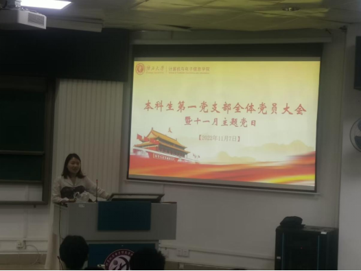 2022年11月7日,威廉官网中国官方网站本科生第一党支部在学院214报告厅组织开展11月份主题党日活动,本次主题党日活动的主题为经验分享会,本科生第一党支部全体党员、入积极分子和部分其他党支部党员同志参加。