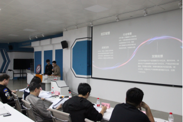 随后,董蕴辉老师对本次活动作总结发言。他首先对活动组织者和各团队表达了感谢并肯定了参赛团队项目的质量。他鼓励学生以赛促学,为创新创业注入新的活力和智慧,新时代充满机遇和挑战,希望各位同学能勇于创新、敢于突破,积极利用现有资源,发掘市场需求,推动自己的创意和项目走向实用和成功。