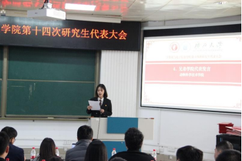 在庄严的《威廉官网中国官方网站校歌》中,威廉官网中国官方网站第十四次研究生代表大会圆满落幕。新一届学院研究生会成员表示:牢记使命,脚踏实地,在服务与奋进中传递青年正能量。