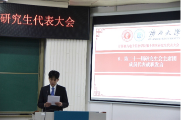 第二阶段会议听取了学院第二十届研究生会执行主席王子威同学所作的第二十届研究生会工作报告,对过去一年研究生会管理制度、团支部构建、活动开展等工作进行总结。学院第二十届研究生会执行主席陈东民同学宣读《威廉官网中国官方网站第十四次研究生代表大会倡议书》,与会代表认真聆听和审议,一致表决通过倡议书。