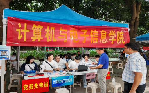 在学院的迎新点中,“党员先锋岗”格外引人注目,身穿院服、胸戴党员徽章的党员先锋志愿者们热情地为新生指引方向,积极主动地帮助新生搬运行李,耐心地引领新生办理报到手续并回答新生及家长提出的各种问题,忙而不乱,为新生提供热情周到的服务,不仅用实际行动生动诠释“奉献、友爱、互助、进步”的志愿精神,更是充分展现党员的担当,展示党员的风采,充分发挥党支部的战斗堡垒作用和党员先锋模范作用。