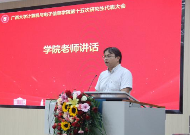 学院党委副书记邓珍琪老师讲话。他强调,研究生会要坚持思想引领,团结青年跟党走,以党的创新理论为精神旗帜引领工作方向;研究生会要强化服务意识,认真倾听同学们的意见建议,了解他们碰到的问题和困难,并想尽办法帮忙解决,切实发挥学院与广大同学之间的桥梁纽带作用,不断提高服务同学、服务学院的能力。