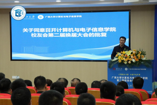 计算机应用专业1991级校友梁晓东作为校友代表发言,他感谢学院对自己多年的指导和栽培,并表示一定会秉承“勤恳朴诚”的校训,以“凝聚校友、服务校友、服务母校、服务社会”为宗旨,以身作则深耕自己的领域,不断致力于学院学科发展和校友工作,为学院高质量发展做出新贡献。
